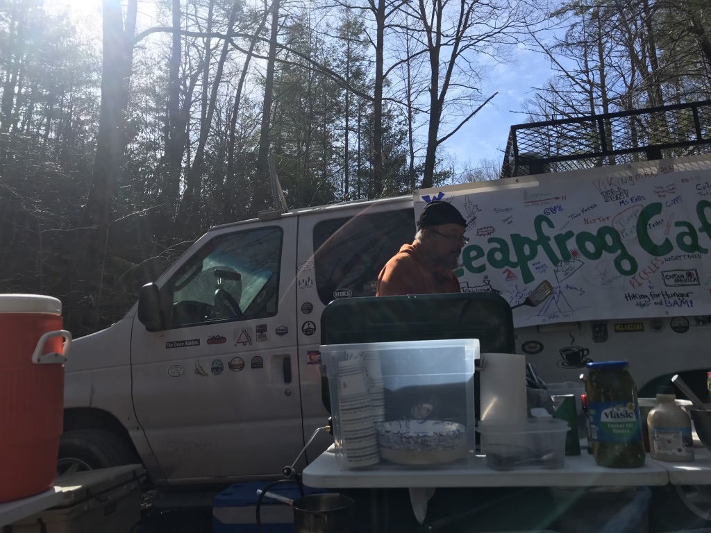 Another thing that sticks out is meeting a man by the name of “fresh ground” He is a trail angel who has dedicated their live’s to feeding thru-hikers. He drives his van along the trail year round and cooks for unexpected hikers as they emerge from the woods. As we exited the Smokies on our last day of the 72 mile trek, he was on the other side with his van/cooking set up and he made us the best breakfast a hunger hiker could dream of.