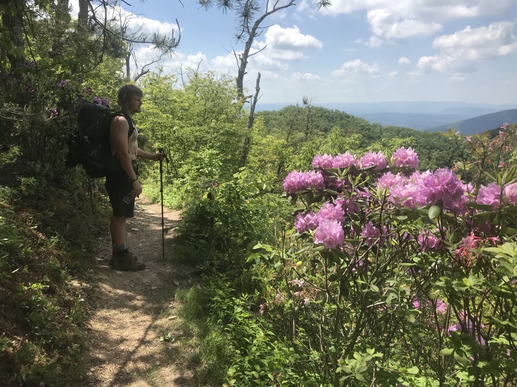Spring is upon us. Over the past month the Appalachian mountains have blossomed with life. All the forest critters are coming out of their winter refuge. Baby bunnies hop along the trail beside us as we make our way to Maine. Lizards scurry across our path as we turn round narrow green corridors peppered with pink rhododendron flowers in bloom. Grazing deer awkwardly gallop down mountainsides after eyeing us curiously as we pass by. Snakes slither across the rafters of our shelters, stalking the nest of baby birds chirping away, ignorant of the danger stalking them. Half naked hippies are sitting in pooling creeks, hiding from the noontime heat.