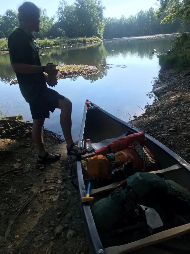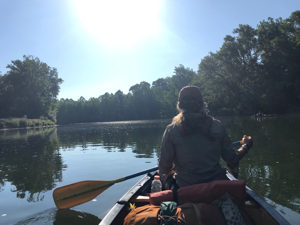 We get in the river and pretty soon run into some locals fishing. We ask them iF there were any big rapids and they laughed and said “oh yea…”. They tried to give us some advice, but for two people who have never canoed in white water it all sounded like gibberish. Then as we were pulling away from them, they shouted out to us “water’s real low. Going toBe a bumpy ride!”