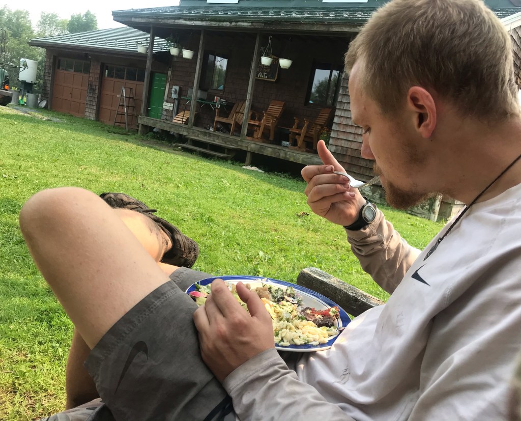 When we get there we find not just cookies, but also delicious, homemade lemonade as well. The ‘Cookie Lady’ as she introduced herself to us, manages a pick your own blueberry farm. I guess people come and pay her for them to pick blueberries. She offered us a huge plate of food if we picked some. So this was how we got ourselves fed that day. Pasta salad, veggies, cookies, lemonade and blueberries… not that bad of a diet for a thru-hiker.