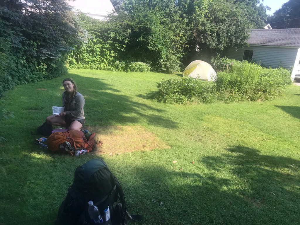 After lunch on Blueberry Hill, Bell and I hiked another ten miles into town with a friend of ours named Looseleaf. It was a beautiful ridge that seemed to just abruptly end in some random town. We just kind of turned out of the woods into somebody’s backyard, which can feel a bit awkward at times. But then sometimes that person says that you can camp in their backyard, like trail angel Tom from Massachusetts. So we set up our tent in this guys backyard and got to know all the other hikers camping there. One had been staying there for three weeks. Another taught me how to pick up an alligator. Another was from Europe. It was an eclectic mix of individuals.